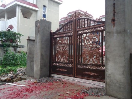 不要經(jīng)常用有水漬(或其他溶液)的手打開門鎖,以免其變色。在打開或轉(zhuǎn)動(dòng)門鎖把手時(shí),不要用力過猛,這樣會(huì)降低門鎖的使用壽命。合頁、門鎖等常用五金,一旦松動(dòng),應(yīng)立即擰緊.當(dāng)門鎖打開不正常時(shí),可在鎖孔內(nèi)加入適量的鉛筆沫,切記用食用油等物品潤滑。,  漆面出現(xiàn)結(jié)皮或粗粒現(xiàn)象時(shí),應(yīng)采取過濾措施,以免刷漆后漆膜不平整,堵塞噴槍。,  4、廠家的生產(chǎn)加工工藝:正規(guī)廠家生產(chǎn)的別墅鋁藝大門,其加工比較精細(xì),切線流暢、角度一致,在拼接過程中應(yīng)該不會(huì)出現(xiàn)較明顯的縫隙,密封性能好,開關(guān)順暢。劣質(zhì)的庭院別墅大門,特別是鋁合金室外產(chǎn)品如果加工不合格,會(huì)出現(xiàn)密封性質(zhì)問題,不僅漏風(fēng)漏雨,而且在強(qiáng)風(fēng)和大的外力的作用下,玻璃會(huì)出現(xiàn)炸裂、脫落現(xiàn)象,從而給業(yè)主造成損失財(cái)物甚至傷人的現(xiàn)象。,  為保持鋁藝院門的原色,需對(duì)鋁藝院門進(jìn)行兩次以上的磷化處理,在其表面形成一層保護(hù)膜,浸泡數(shù)分鐘,這之后還要經(jīng)過噴涂保護(hù)漆、230℃烘干、自然冷卻等步驟,才能完成一戶完整的鋁藝院門的表面色彩亮感。生產(chǎn)工藝,除油除銹除氧化-水洗-酸洗-拋光-水洗-中和-水洗-著色處理-洗滌-干燥及其他后處理。,  3、沖孔制作的,安裝比較簡單;